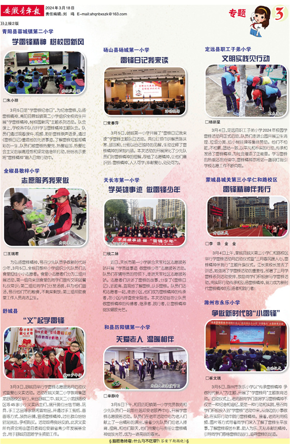 《安徽青年报·学生周刊》励志启智,开阔视野,净化心灵,陶冶情操,参与互动,集新闻性、知识性、趣味性、互动性为一体,是小学生成长的良师益友、参与互动的平台、沟通老师家长的纽带。