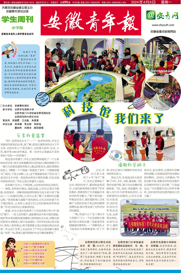 《安徽青年报·学生周刊》励志启智,开阔视野,净化心灵,陶冶情操,参与互动,集新闻性、知识性、趣味性、互动性为一体,是小学生成长的良师益友、参与互动的平台、沟通老师家长的纽带。