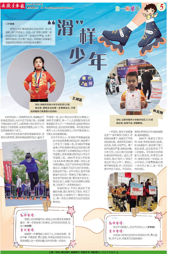 《安徽青年报·学生周刊》励志启智,开阔视野,净化心灵,陶冶情操,参与互动,集新闻性、知识性、趣味性、互动性为一体,是小学生成长的良师益友、参与互动的平台、沟通老师家长的纽带。