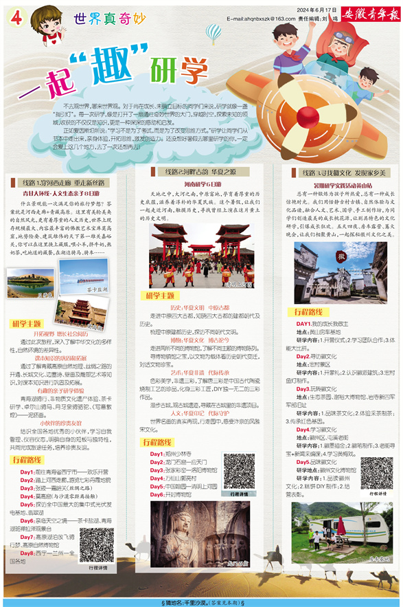 《安徽青年报·学生周刊》励志启智,开阔视野,净化心灵,陶冶情操,参与互动,集新闻性、知识性、趣味性、互动性为一体,是小学生成长的良师益友、参与互动的平台、沟通老师家长的纽带。