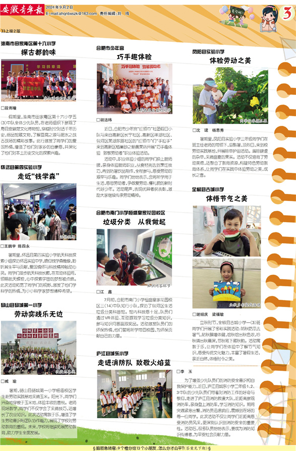 《安徽青年报·学生周刊》励志启智,开阔视野,净化心灵,陶冶情操,参与互动,集新闻性、知识性、趣味性、互动性为一体,是小学生成长的良师益友、参与互动的平台、沟通老师家长的纽带。