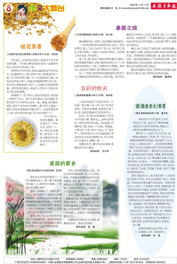 桂花茶香 泰国之旅 五彩的秋天 读《独自长大》有感 美丽的家乡