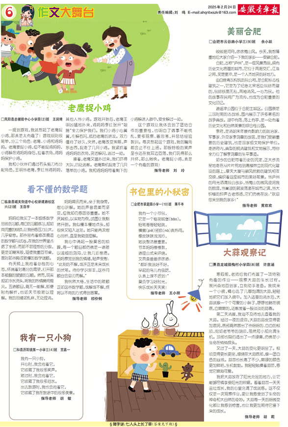 老鹰捉小鸡 看不懂的数学题 书包里的小秘密 美丽合肥 我有一只小狗 大蒜观察记