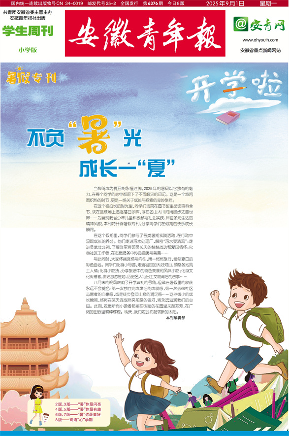 《安徽青年报·学生周刊》励志启智,开阔视野,净化心灵,陶冶情操,参与互动,集新闻性、知识性、趣味性、互动性为一体,是小学生成长的良师益友、参与互动的平台、沟通老师家长的纽带。