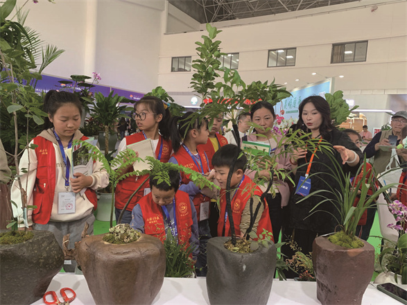 10月20日,2023中国·合肥苗木花卉交易大会在中国中部花木城(肥西)盛大开幕。为充分了解花卉的相关知识,培养少年儿童践行“绿色发展”理念,当天下午,来自合肥市郎溪路小学、肥西县董岗学区中心学校的本报13名学生记者走进苗交会现场,近距离观赏美丽的植物和花卉,通过聆听工作人员的解说,在实践中了解花卉相关知识。同时,采访了相关展位负责人,在对话中进一步了解花卉种植的技巧,培养种花护、花的兴趣爱好。