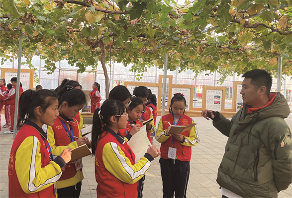 萧县素有“葡萄之乡”的美誉,葡萄种植已有1000多年的历史,近年来,乘着科技创新的快车,萧县不仅保留下种植葡萄的传统,还改进了种植、管护、加工、销售方法,实施了“产业+文旅”的发展战略,让葡萄串起了乡村振兴路。为增强学生热爱家乡的情怀,11月16日,来自萧县实验小学、安徽师范大学附属萧县凤翔学校的本报40余名学生记者,走进白土镇张村现代农业示范园,共同探寻家乡农业发展的奥秘。