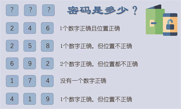 1.昊昊想要进资料室找些东西,可是资料室的门上安装了密码锁,他并不知道密码,只看到一旁的牌子上画着这样的提示。同学们,你们能帮助昊昊推断出正确的开锁密码吗?