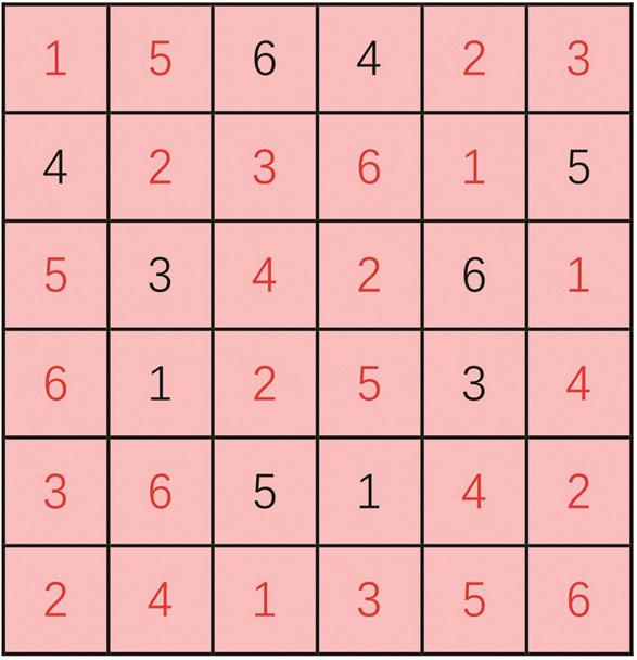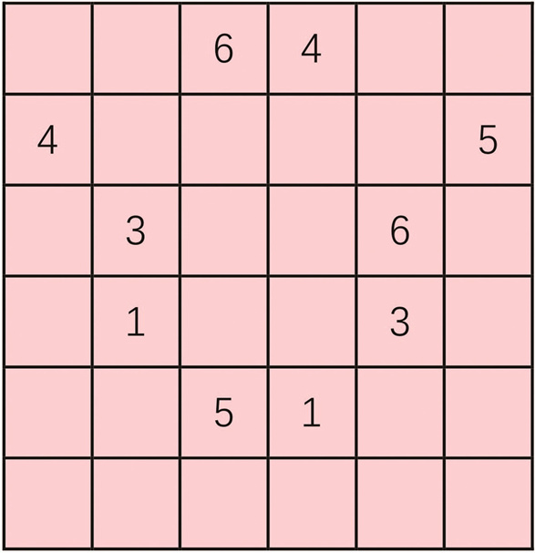 2.小翼最近迷上了数独,这不,趁着空闲时间,她又开始玩起了六宫格数独游戏,不过她好像被难住了。同学们,你们试着帮帮她吧!