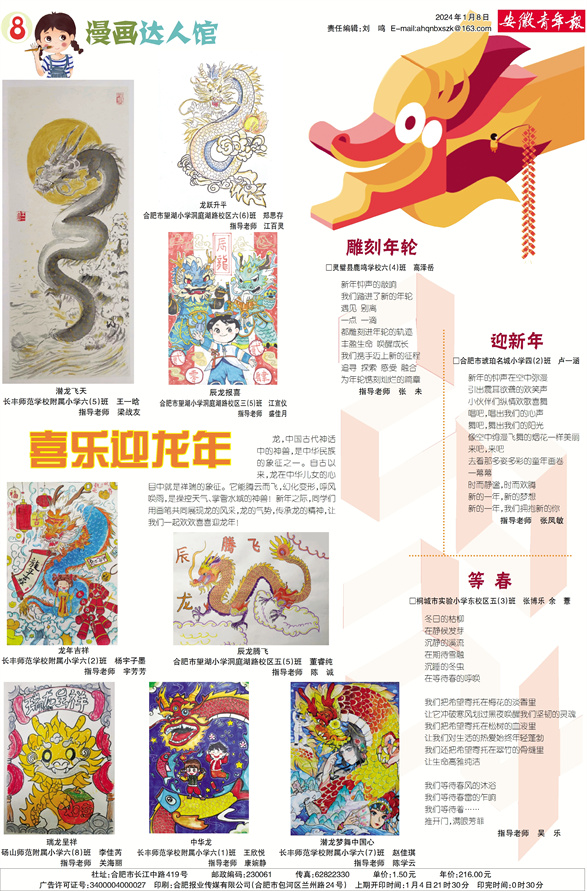 龙,中国古代神话中的神兽,是中华民族的象征之一。自古以来,龙在中华儿女的心目中就是祥瑞的象征。它能腾云而飞,幻化变形,呼风唤雨,是操控天气、掌管水域的神兽!新年之际,同学们用画笔共同展现龙的风采,龙的气势,传承龙的精神,让我们一起欢欢喜喜迎龙年!