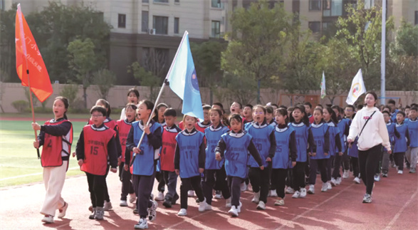 一周快报 合肥市南门小学森林城校区 运动燃青春 少年正风华 □张成霞 为有效落实“双减”和德智体美劳“五大行动”,进一步提高学生体质健康水平, 2023年庐阳区首届中小学校园跑操比赛评选结果于今年2月初公示。经评选,南门小学森林城校区以出色的表现和团队协作精神,荣获特等奖第一名的好成绩!
