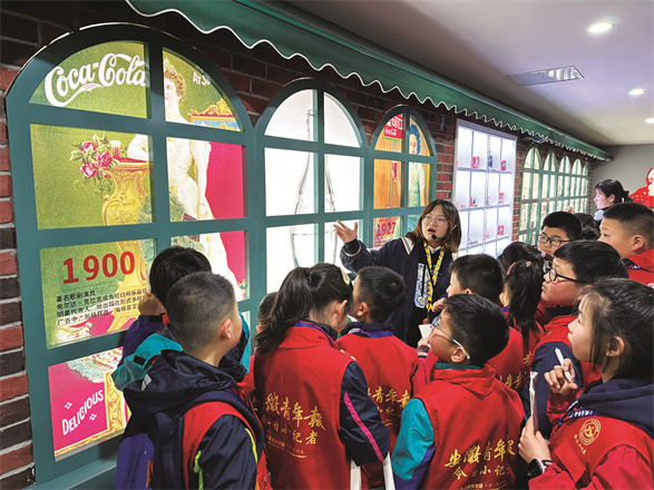 “可口可乐究竟是怎么诞生的呢?”学生记者曹语晨充满好奇。“可口可乐是由一名叫彭伯顿的药剂师,在1886年一次调试医学专用剂过程中偶然发现的。”活动现场,经过讲解员的介绍,大家了解了可口可乐从美国乔治亚州亚特兰大市诞生到畅销全球的发展历程。学生记者们边走边听,各式各样别致的周边产品映入眼帘,大家纷纷合照留影。