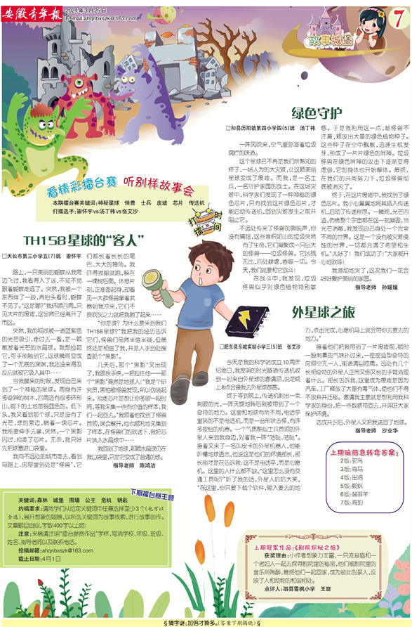 注意:来稿请注明“擂台参赛作品”字样,写清学校、年级、班级、姓名、指导老师以及联系电话。