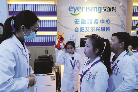 合肥市大通路小学三(2)班 施幕冉:我经历了一次非常有意义的活动,了解到各种眼科知识,进行了视力检查,还体验了帮爸爸妈妈检查视力。我以后会坚持良好的生活习惯来保护眼睛。