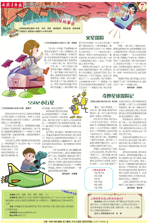 注意:来稿请注明“擂台参赛作品”字样,写清学校、年级、班级、姓名、指导老师以及联系电话。