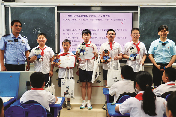 魅力少先队 庐江少年 真棒 当遇见陌生老人摔倒,要不要出手相助?前段时间,庐江县岗湾小学六(5)班的郑泽宇、秦浩宇、柯梓梁、宛文杰、万金瑞5名同学,用实际行动给出了最值得称赞的回答。 临危不乱 救助老人 “那天,我和另外4位小伙伴相约到绣溪公园的书社写作业,中间在公园里放松玩耍时见到前面一名老人走路跌跌撞撞,摔倒了两次。”郑泽宇回忆说。 见老人摔倒后,5名同学迅速上前将老人扶起,并细心照顾。由于老人身体虚弱,再次摔倒,嘴角出血,少年们没有慌乱,而是迅速分工合作,有的用电话手表拨打120,有的跑向马路寻求警察帮助,有的则留在原地照顾老人。在他们的及时救助下,老人得到了妥善的救治,已平安脱险。 据当时执勤的警察叔叔许超回忆,当时他在执行任务的途中遇见两位同学寻求帮助,了解情况后他便停好车跟着两位少年赶到现场,进行先期处理并联系上了老人的家人。此时的5名少年看到警察叔叔到了现场才放下心来,待救护车到达后,便默默离开现场,直到有民警联系学校,老师和同学们才知道这件事。 好少年 值得表扬 “这五位少年的行为彰显了当代少年儿童的责任和担当,体现了学校的教育理念”,岗湾小学的校长邢双六表示,“学校会在升旗仪式上对他们进行表彰,并号召全校同学向他们学习。” 为了鼓励少年们见义勇为的行为,隔天上午,庐江县公安局民警,特地来到学校“送奖上门”,为他们送上荣誉证书和可爱的“警察小熊”。 当被问及当时的想法时,及时用电话手表向120求助的郑泽宇表示:“我们当时什么也没想,就想着怎样救人。”其他同学们也说:“这些事都是应该做的,老师平时也都教导他们要帮助他人。”这朴实的话语道出了他们内心的善良和担当。 这五位少年的善举不仅赢得了很多人的称赞,也让我们看到了当代少年的风采。他们是真正的“少年英雄”,是我们学习的榜样。