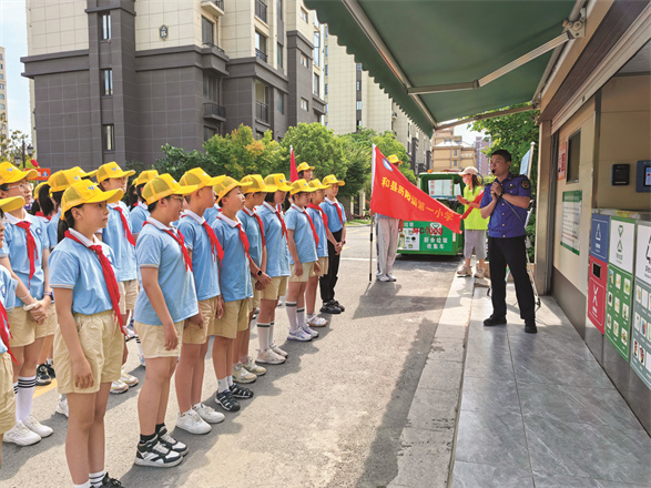 在智能垃圾分类房前听讲解