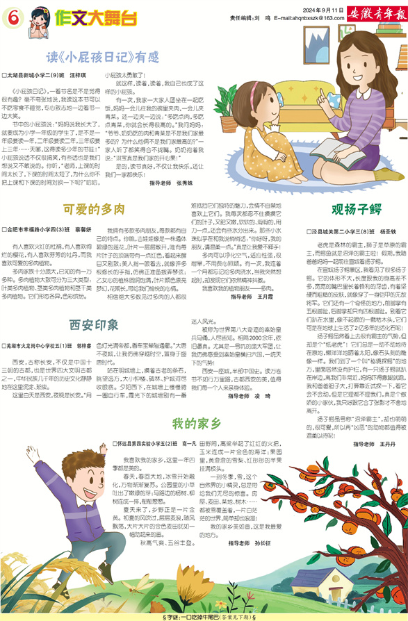 《安徽青年报·学生周刊》励志启智,开阔视野,净化心灵,陶冶情操,参与互动,集新闻性、知识性、趣味性、互动性为一体,是小学生成长的良师益友、参与互动的平台、沟通老师家长的纽带。