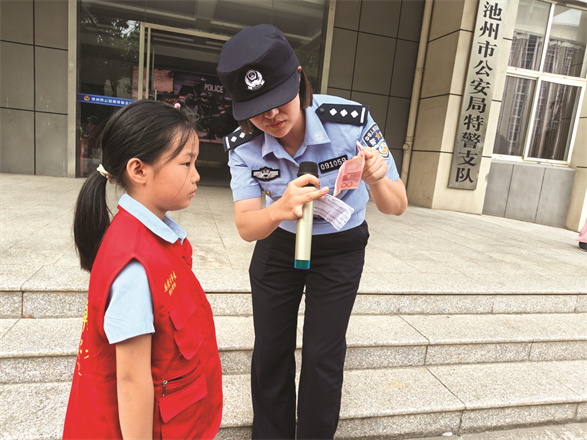 为增强学生们的法治观念和安全意识,培养学生们的爱国情怀和社会责任感。9月26日下午,《安徽青年报》“厚植爱国情怀 争做时代新人”学生记者主题采风活动在池州市开启,来自贵池区的40余名学生记者走进池州市公安局。通过实地体验,切实感受公安工作的惊险与挑战,亲身感知公安队伍对维护社会治安、保护人民生命财产安全发挥的重要作用,激发了他们对警察职业的崇敬与向往,更坚定了同学们长大后保家卫国的坚定信念。