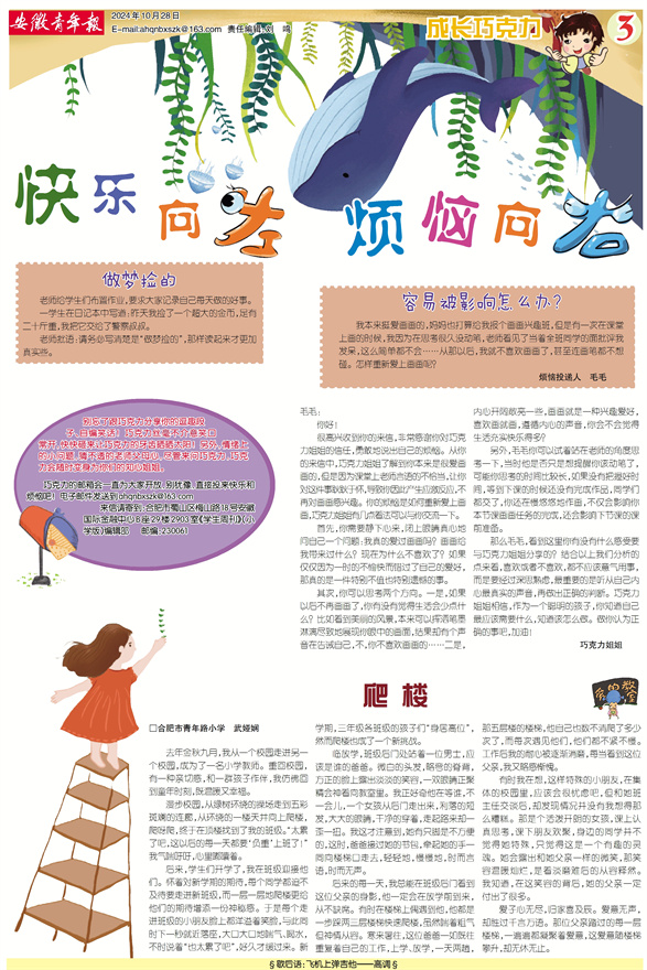 漫步校园,从绿树环绕的操场走到五彩斑斓的连廊,从环绕的一楼天井向上爬楼,爬呀爬,终于在顶楼找到了我的班级。“太累了吧,这以后的每一天都要‘负重’上班了!”我气喘吁吁,心里嘟囔着。