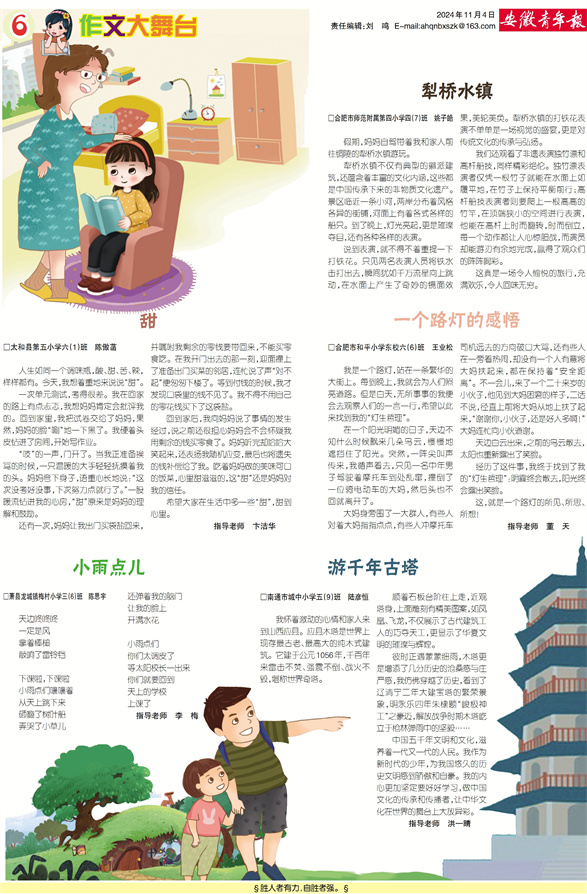 《安徽青年报·学生周刊》励志启智,开阔视野,净化心灵,陶冶情操,参与互动,集新闻性、知识性、趣味性、互动性为一体,是小学生成长的良师益友、参与互动的平台、沟通老师家长的纽带。