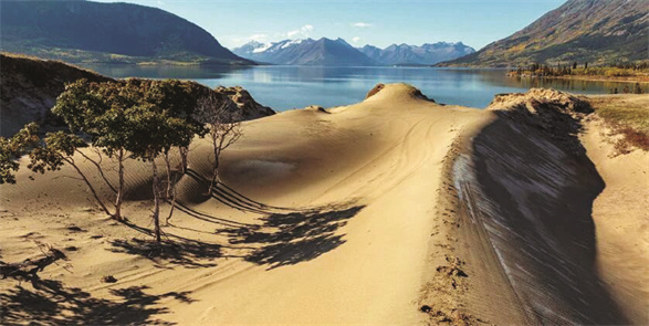 在我们印象中,沙漠一望无垠,难以跨越。可是,在加拿大,却有这样一片沙漠:占地面积只有2.6平方千米,半小时就能走出去;四周到处都是湖泊绿林,可以说是位于绿洲之中。这就是位于加拿大育空地区的卡克罗斯沙漠。这片土地最早的时候是一条河,不过后来水位下降、地势增高,使得河床裸露,河水被太阳烤干,形成了这个小规模的沙漠。