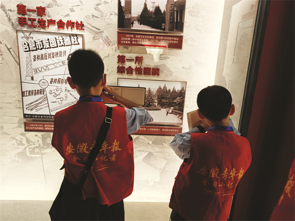 11月14日下午,来自合肥市4所学校的21名本报学生记者走进合肥城市记忆馆。通过视、听、触等多维感官互动沉浸式探索,结合一幅幅照片、一段段视频、一件件实物亲身感受合肥发展变迁的历程。
