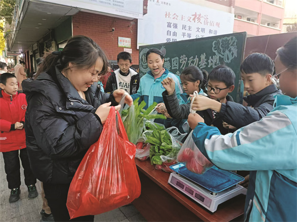 近日,肥东县店埠学区中心学校开展了“紫藤园”劳动及蔬菜义卖活动,同学们调研市场、采摘蔬菜、设计海报并参与售卖。活动不仅丰富了同学们的劳动经验,还培养了团队合作和社会实践能力。