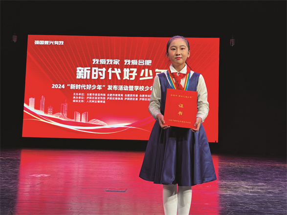 国旗下、广播站、赛场上都是她的宣讲阵地,她经常利用课余时间分享红色故事,带动身边人自觉弘扬党的光辉历史和光荣传统。她先后荣获“第十四届中国国际园林博览会红领巾讲解员”“安徽名人馆优秀志愿者”、安徽省“学宪法、讲宪法”演讲比赛一等奖、安徽名人馆“传承中华好家风 争做时代好少年”讲解大赛一等奖、“安徽省学党史·听百年初心”音频故事征集活动二等奖、渡江战役纪念馆“优秀颂读者”、包河区“新时代好少年标兵”等荣誉。