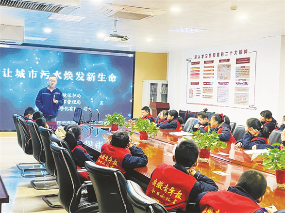 “我们平时的生活污水是怎样处理的?”“污水变成净水后又将流向哪里?”带着这些疑问,为引导学生树立节水意识,养成珍惜水资源的良好习惯,3月19日,在“世界水日”来临之际,来自合肥市四河小学的30名学生记者代表走进合肥市清溪净水厂,了解污水处理的相关流程,分享节水环保心得,学习污水处理新技术,争当节水宣传小使者。