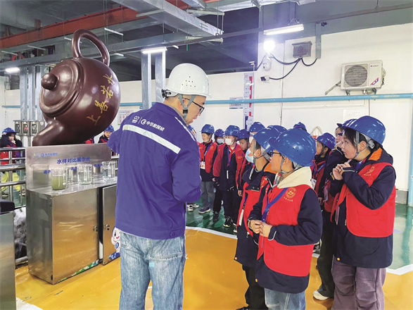 参观完处理车间,来自安徽中澳科技职业学院的大学生志愿者们为学生们带来了精彩的水科学实验。通过简易净水器制作、水的净化对比实验等互动环节,学生们亲身体验到了科学的魅力,也进一步加深了对水资源的珍惜。