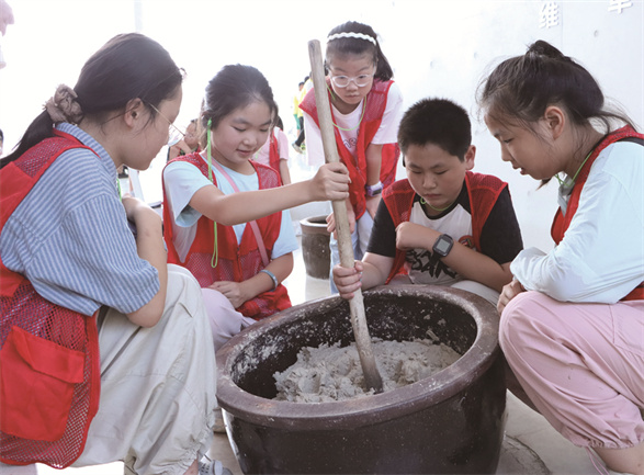 今年暑假,我有幸参加了滁州市“寻迹诗仙,畅游山水”夏令营活动。来到宣城,我走进了古雅的传统工坊,亲手体验捣纸浆的乐趣。废旧原料在木槌反复捶打下,渐渐化作细腻柔滑的纸浆,指尖触碰间,仿佛触摸到千年技艺的温度。看着原料在手中蜕变的过程,我深深感受到传统技艺的独特魅力。这个暑假没有虚度,因为我在实践中获得了成长与惊喜,这段经历也成了我最珍贵的记忆。