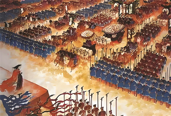 今年9月3日上午,为纪念中国人民抗日战争暨世界反法西斯战争胜利80周年,北京天安门广场举行了盛大的阅兵仪式,无数国人守在屏幕前,为这场展示国威军威的盛典心潮澎湃。然而,同学们有没有想到一个问题:中国古代是否也有阅兵式?答案是肯定的。据《周礼·大司马》记载,早在周代,就已经形成按四季分述的军事训练制度,每季又分前后两个部分——前半部分是教练和检阅之礼,后半部分是借用田猎演习之礼。