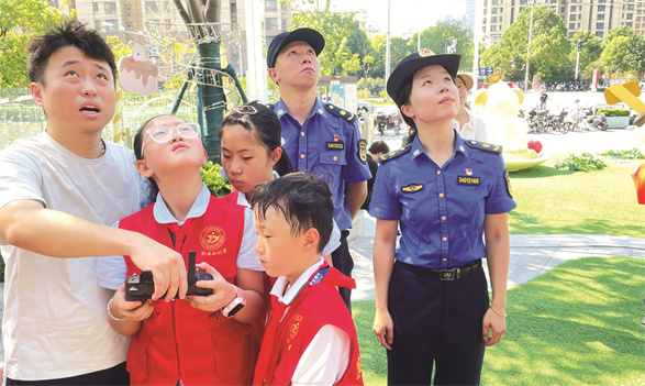 完成市容巡查后,学生记者们进入了智慧城管体验环节,最让学生记者们兴奋的是无人机巡查。工作人员操控着无人机飞上了天空,通过屏幕,学生记者们可以清晰地看到无人机传回的画面。据了解,无论是街道上的垃圾堆积,还是违规搭建的建筑,都逃不过无人机的“法眼”。一旦发现问题,工作人员就能迅速通知相关人员前往处理。“无人机巡查不仅效率高,还能覆盖到一些人工难以到达的地方,真是太厉害了!”学生记者黄桦惊叹道。