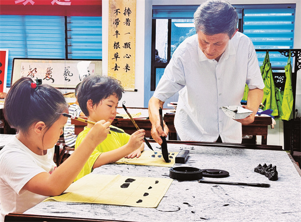 魅力社团 墨香时光 □魅力社团:合肥市长江路第三小学兰亭分校书法社团 “哇,咱们学校的书法教室也太漂亮啦!”合肥市长江路第三小学兰亭分校二年级的同学们一踏入书法教室,便发出阵阵惊叹。古色古香的栗色条案与木凳整齐排列,案上的毛毡浸满墨痕,与毛笔、砚台相互映衬。米色宫灯悬于头顶,柔和的光芒倾洒而下,散发着古朴雅致的气息。墙上挂满的书法作品,笔走龙蛇间尽显方寸之美……这里,便是合肥市长江路第三小学兰亭分校书法特色社团的教室。 据学校负责教学管理的副校长阮莉介绍,2006年,在争创国家级书法教育特色学校的进程中,“兰亭书法社团”应运而生。作为国家级书法教育示范学校的核心阵地,兰亭人始终秉持“翰墨养正,诗书化人”的育人理念,立志打造一座以翰墨滋养童心的文化殿堂。在这片天地里,书法不仅是线条与墨色的艺术呈现,更是中华文脉的生动延续,是培育“认认真真写字,堂堂正正做人”的兰亭新时代少年的重要路径。 社团自成立至今,已走过十九载岁月。六(2)班的汪雨琦满怀深情地说:“毛笔书法社团,是我与传统文化最美的邂逅之地。曾经,横竖撇捺的练习枯燥又艰难,如今,我的笔下已能写出流畅自然的字迹。在悠悠墨香中,我触摸到了汉字的深厚底蕴,更从中领悟到诸多人生哲理。这段与毛笔相伴的时光,是我成长路上最珍贵的馈赠。”五(2)班的王梓骞也兴奋地分享道:“每次拿起毛笔,蘸墨于宣纸之上书写,内心便满是宁静与喜悦。书法的魅力,深深吸引着我。在兰亭,我有幸遇到了对我影响深远的书法老师,他不仅传授我书法技巧,更教会我如何以书法传情达意。” 据社团负责人介绍,从在庐阳区首届社团展演中荣获“优秀展演奖”,到在安徽省素质教育成果展上得到赞许,兰亭人不断将书法之艺从课堂推向更广阔的舞台。社团的同学们在各类赛事中表现优异,累计23人次荣获国家级奖项,500人次斩获省、市、区级嘉奖。此外,社团连续十八年开展“墨香送福”义务写春联活动,同学们挥毫泼墨,书写并送出超5000副春联,成为春节里一道温暖人心的风景线。如今的兰亭书法社团,在传承文脉中培育新苗,在精耕细耘中助力成长,兰亭的书法少年们于四方舞台绽放光彩,彰显担当。
