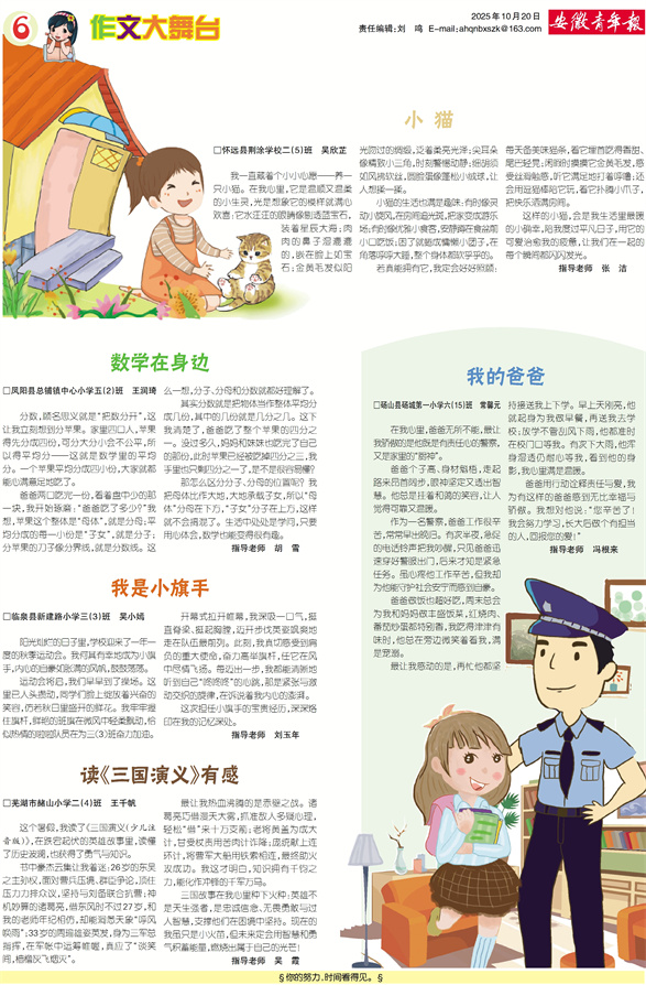 《安徽青年报·学生周刊》励志启智,开阔视野,净化心灵,陶冶情操,参与互动,集新闻性、知识性、趣味性、互动性为一体,是小学生成长的良师益友、参与互动的平台、沟通老师家长的纽带。
